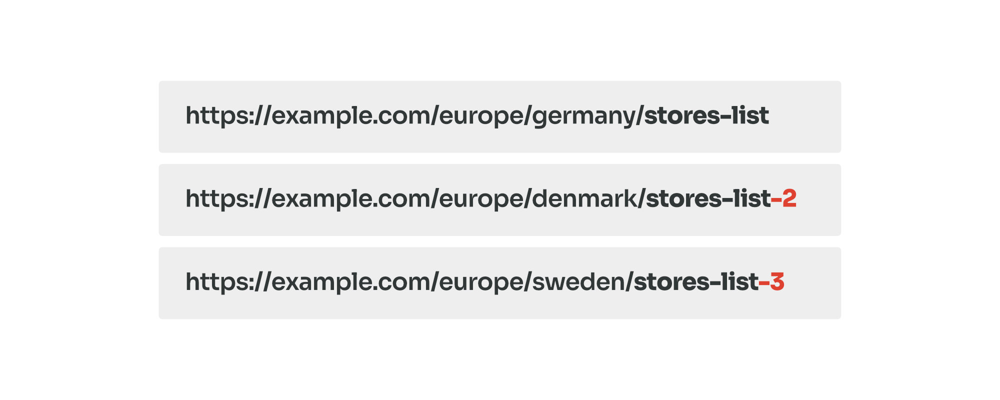 Child pages under different parents, for example /marketing/contact/ and /sales/contact/. - Multilingual sites